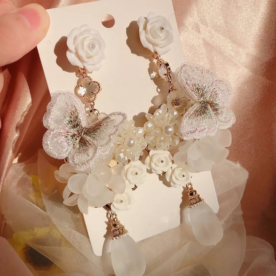 【お取り寄せ商品】ピアス アクセサリー レディース ゴージャス バラ 薔薇 ばら 蝶 ホワイト ストーン キラキラ ゴージャス