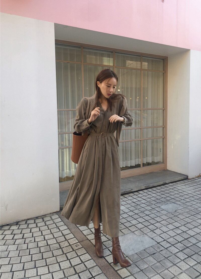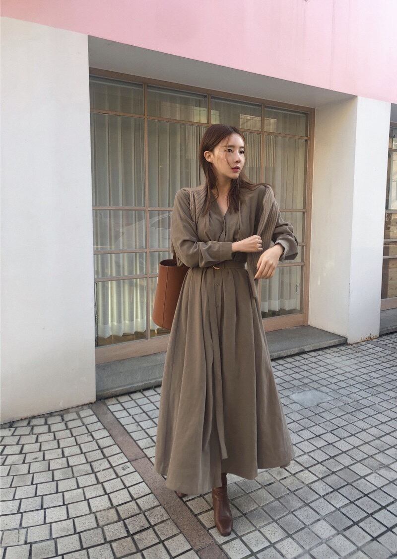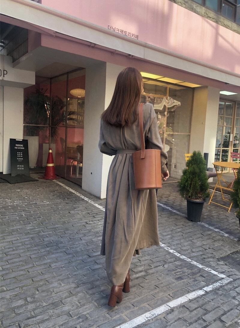 【お取り寄せ商品】ワンピース Vネック ロング丈 長袖 大人 韓国 シンプル カジュアル