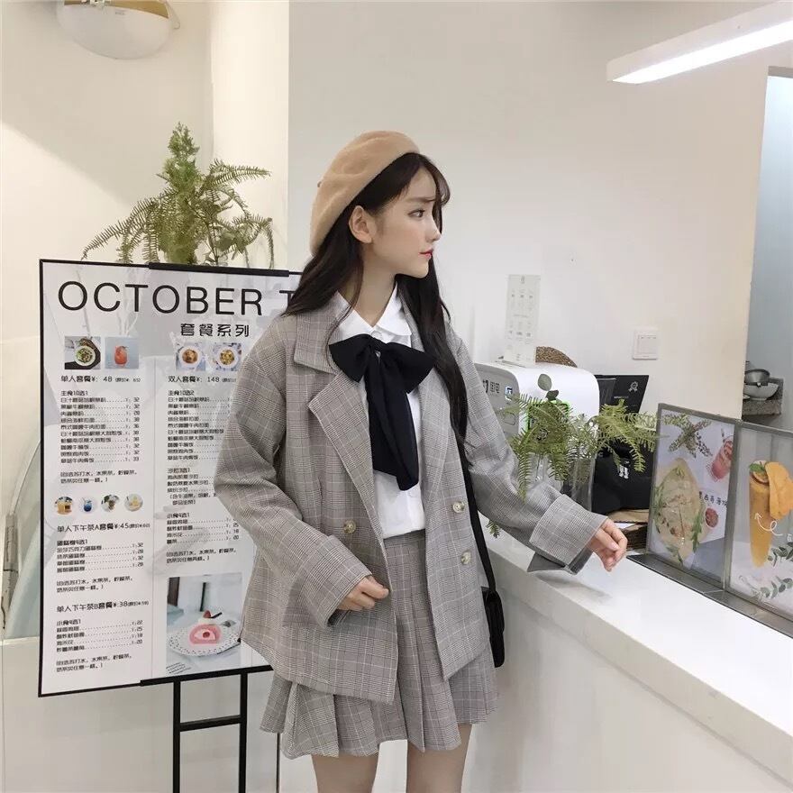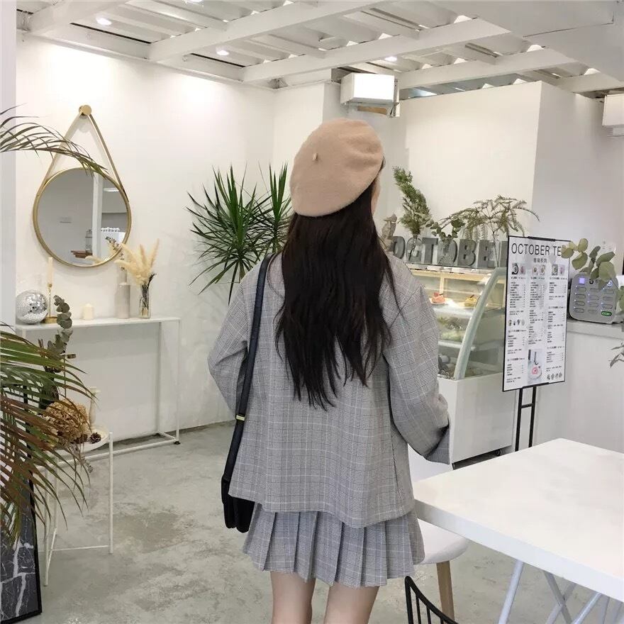 【お取り寄せ商品】2点セット セットアップ ジャケット スカート チェック プリーツ 韓国