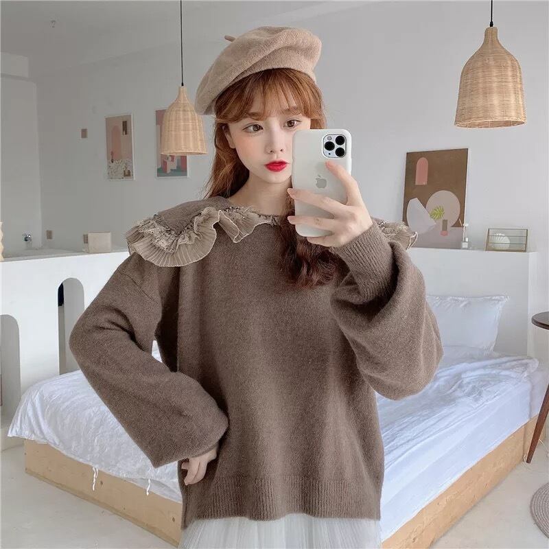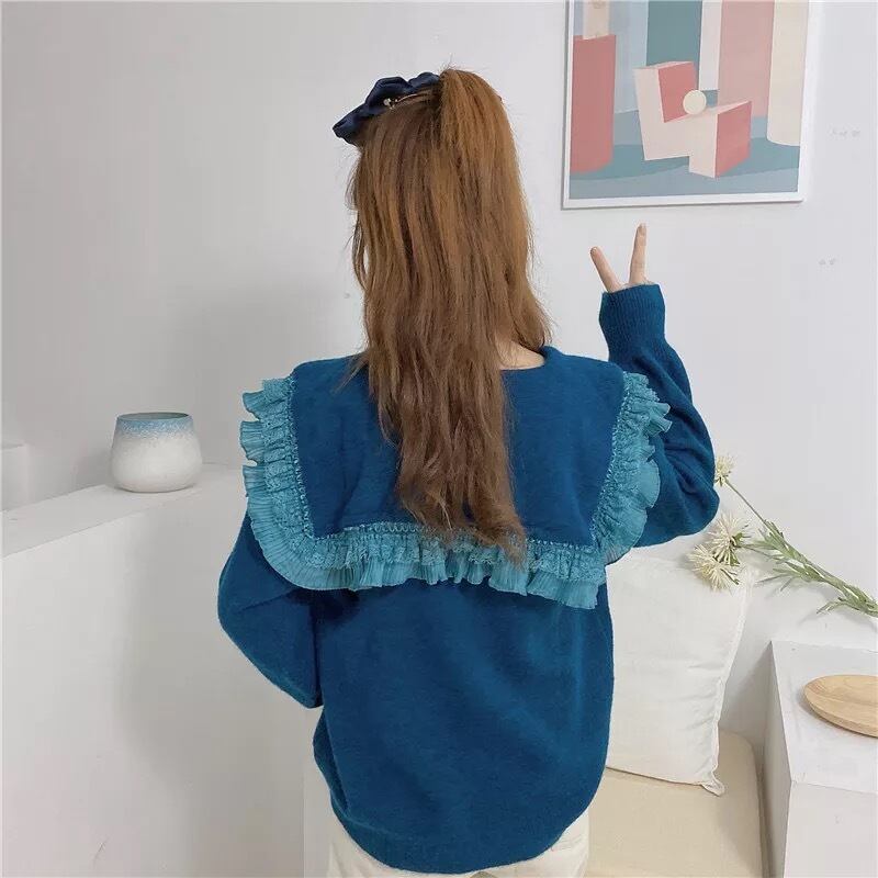 【お取り寄せ商品】ニット セーター セーラー襟 フリル ゆめかわいい 病み可愛い 原宿 フリル 秋 冬 トップス レディース