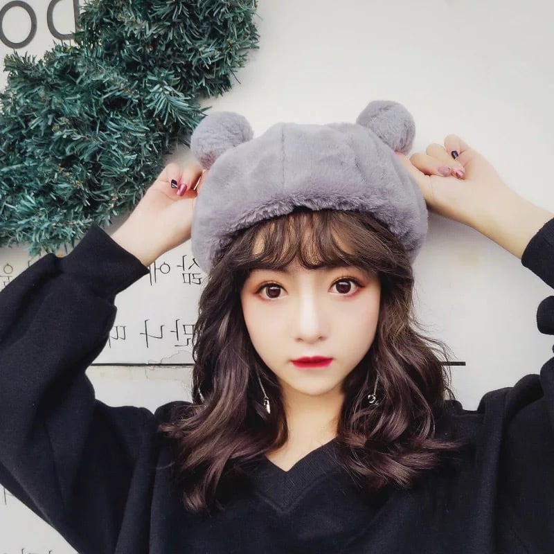 【お取り寄せ商品】帽子 ベレー帽 もこもこ ファー 熊耳 原宿 レディース ゆめかわいい