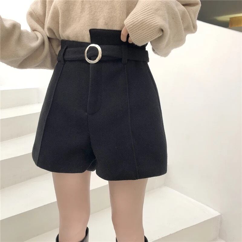 【お取り寄せ商品】ショートパンツ ボトム ズボン レディース 秋 冬 ベルト付き ハイウエスト 着痩せ シンプル カジュアル