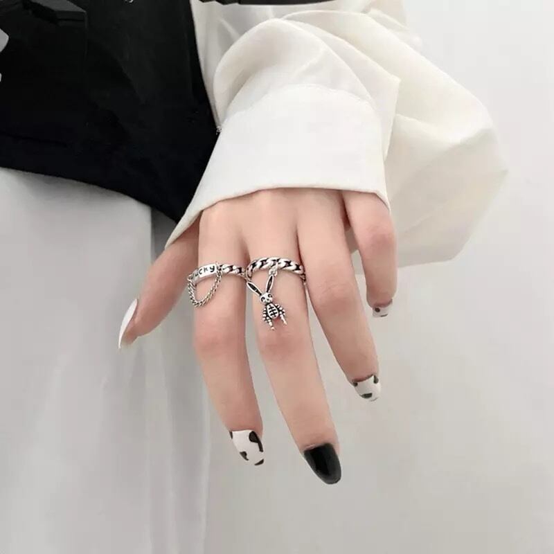 【お取り寄せ商品】リング 指輪 ダーク ゴシック 原宿 サブカルチャー 十字架 クロス うさぎ シルバー