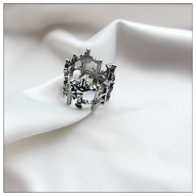 【お取り寄せ商品】リング 指輪 ダーク シルバー サブカルチャー ゴシック 原宿 十字架 クロス 病み可愛い フリーサイズ