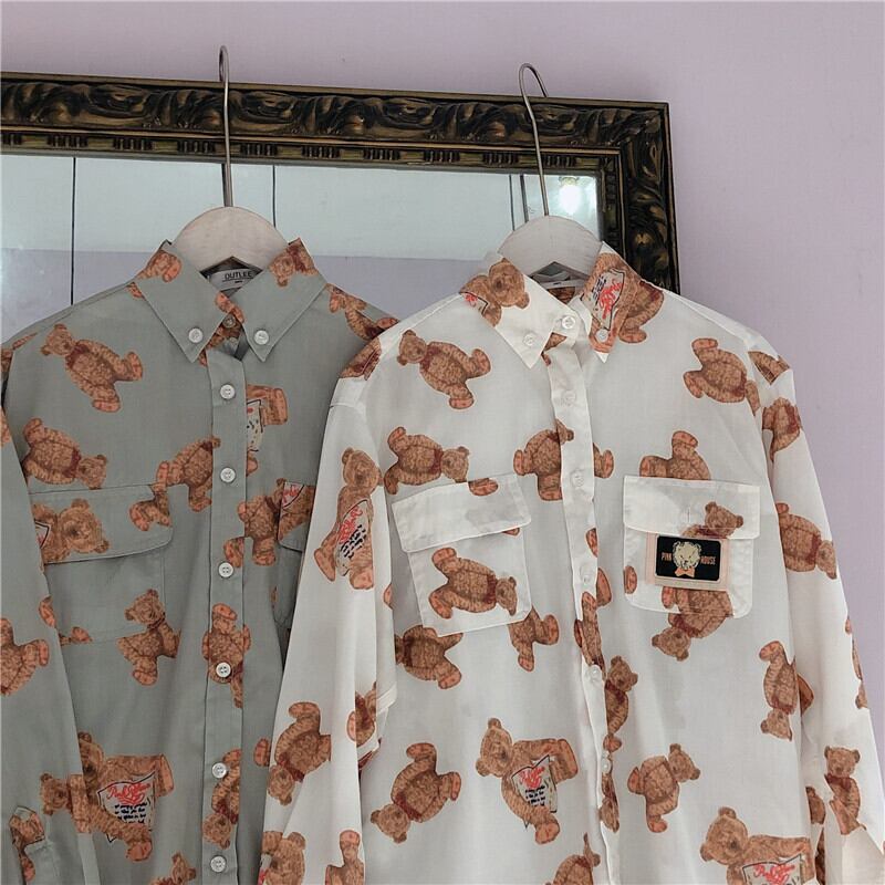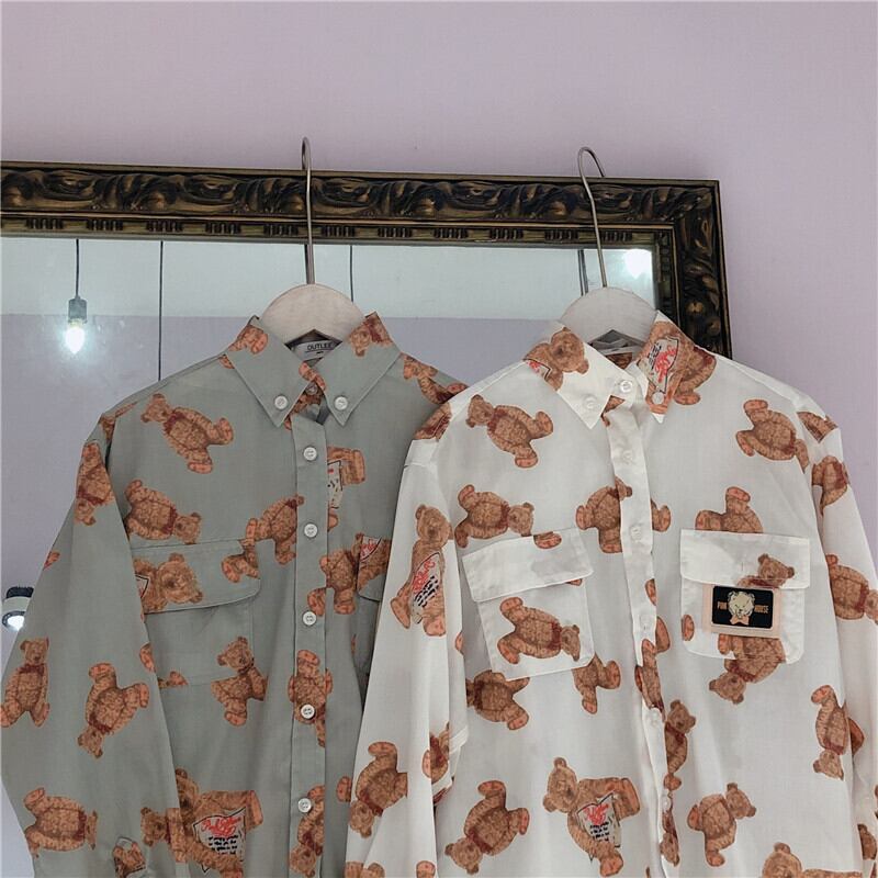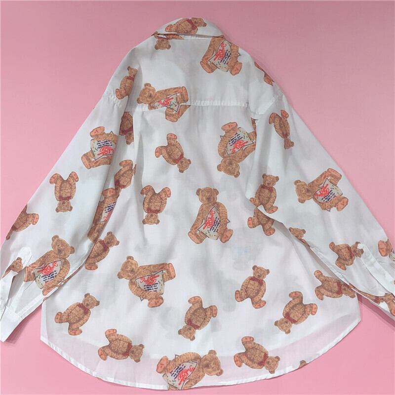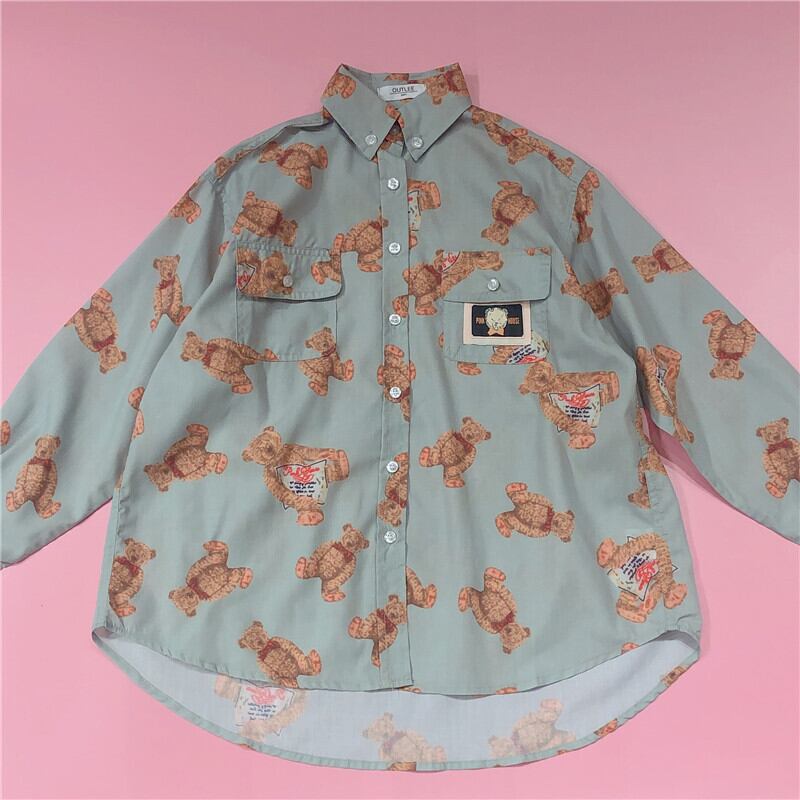 【お取り寄せ商品】シャツ テディーベア 原宿 ゆめかわいい 古着風 秋 春 冬 トップス サブカルチャー