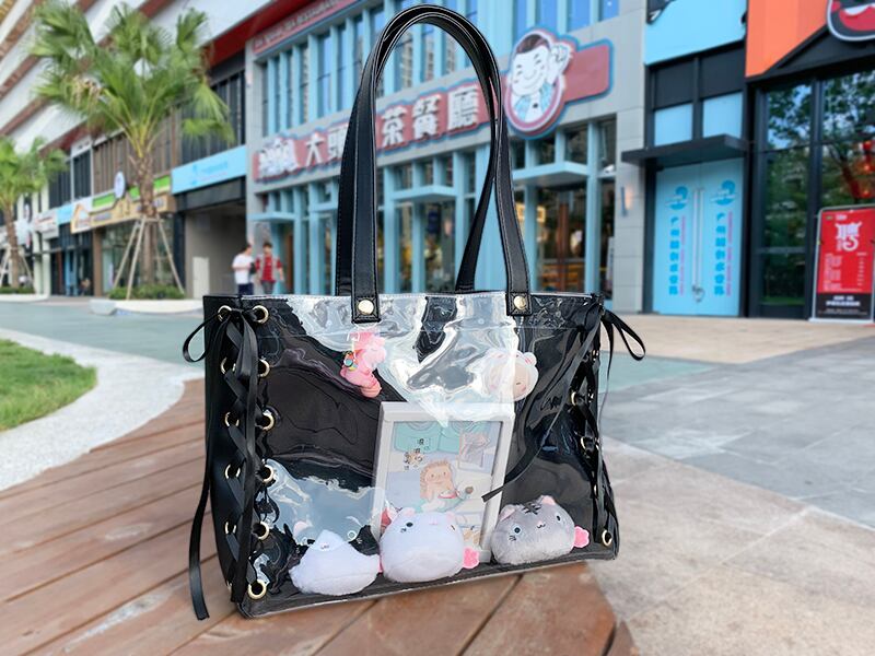 【お取り寄せ商品】鞄 バッグ ハンドバッグ 病み可愛い ゴシック ダーク クリアバッグ 推し事バッグ ヲタクカバン ゆめかわいい 原宿 パステル リボン ロリィタ ロリータ レースアップ 編み上げ