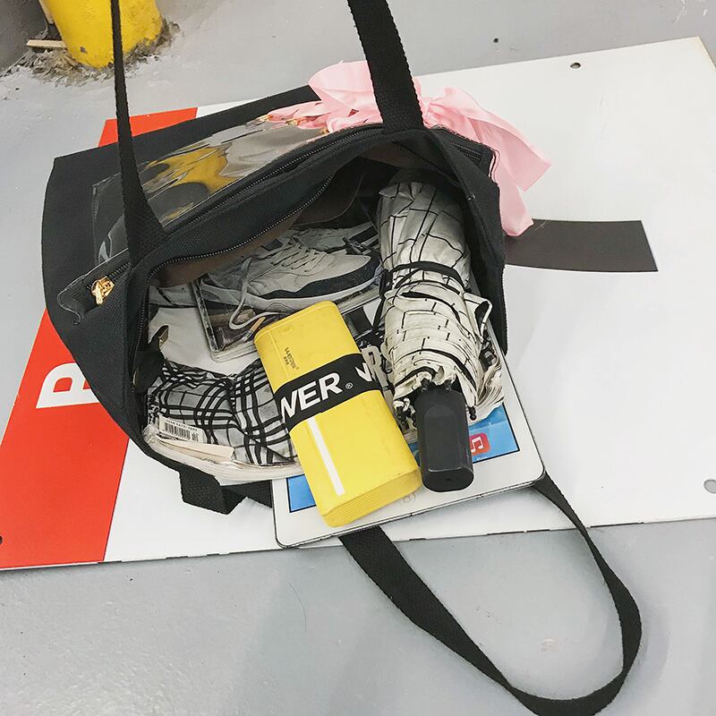 【お取り寄せ商品】トートバッグ カバン ショルダーバッグ キャンバスバッグ 推し事バッグ クリアバッグ リボン ゆめかわいい 原宿