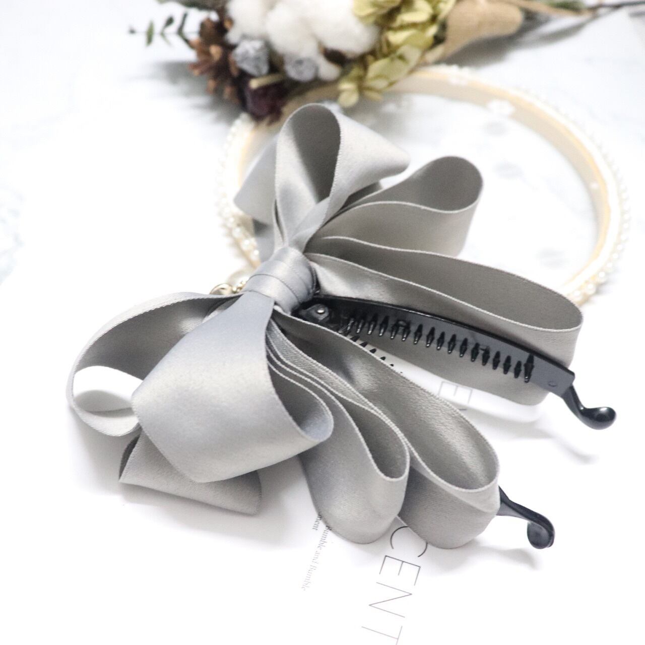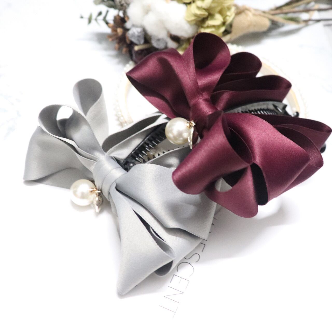 【お取り寄せ商品】バナナクリップ ヘアアクセサリー リボン パール 大人 おしゃれ ヘアクリップ