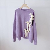 【お取り寄せ商品】ニット セーター リボン スリット 異形 アシンメトリー サブカルチャー カジュアル 原宿 パステル ゆめかわいい