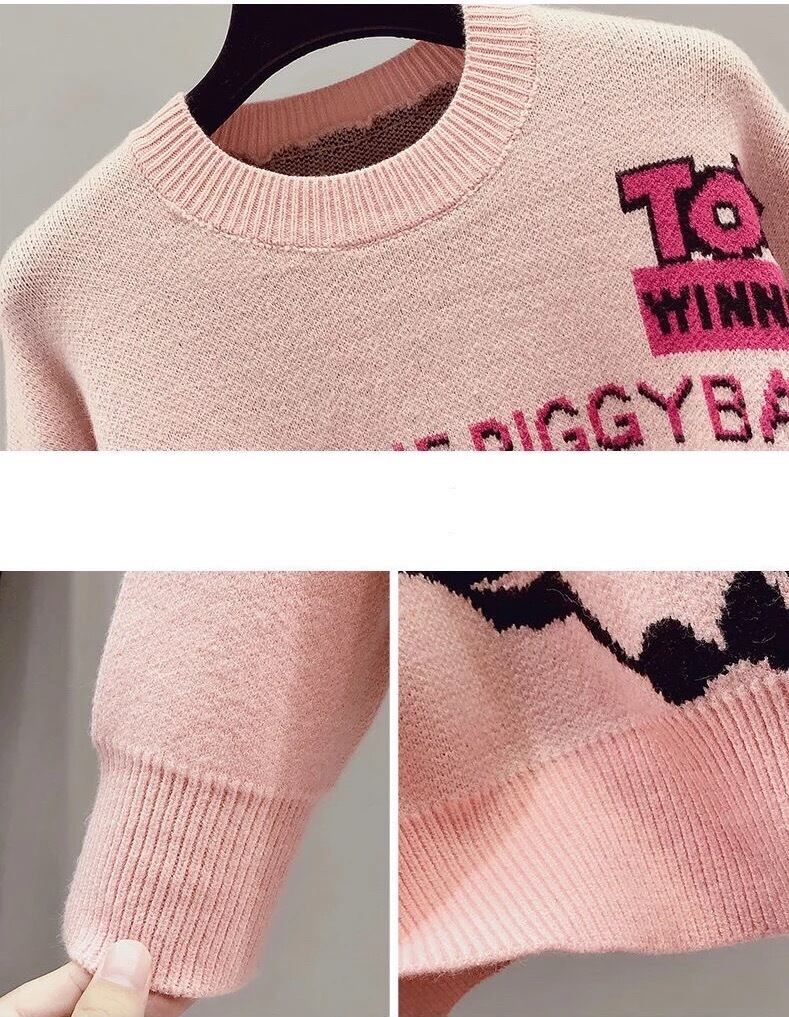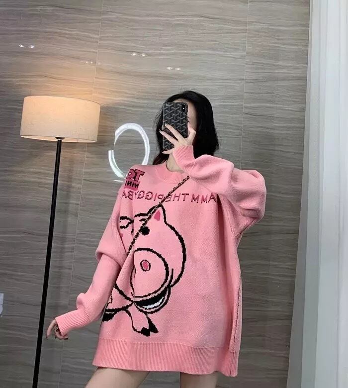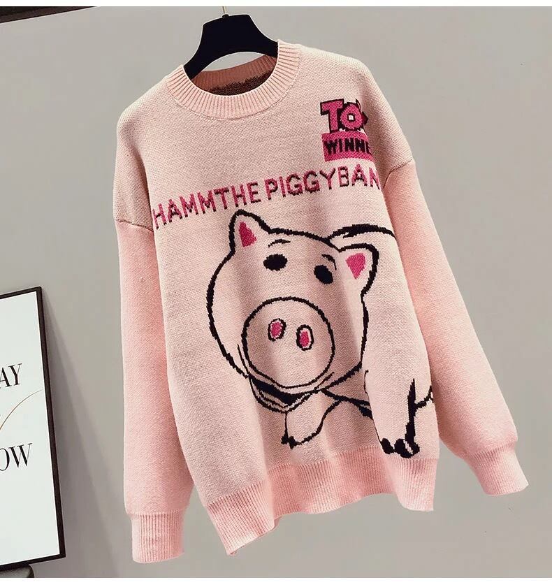 【お取り寄せ商品】ニット セーター 丸首 ピンク ブタ キャラクター 原宿 サブカルチャー