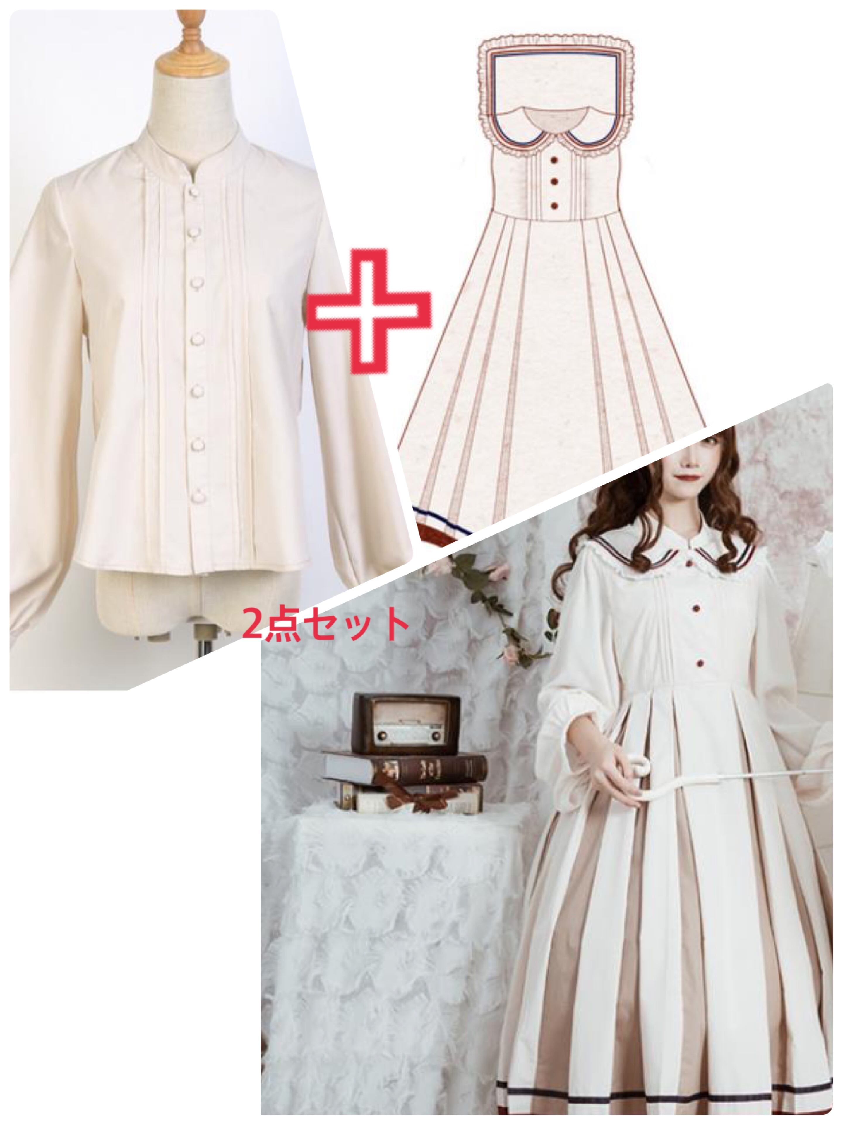 【お取り寄せ商品】2点セット シャツ ジャンパースカート ワンピース ロリィタ ロリータ パフスリーブ フリル 丸襟 姫 原宿 ゆめかわいい レディース