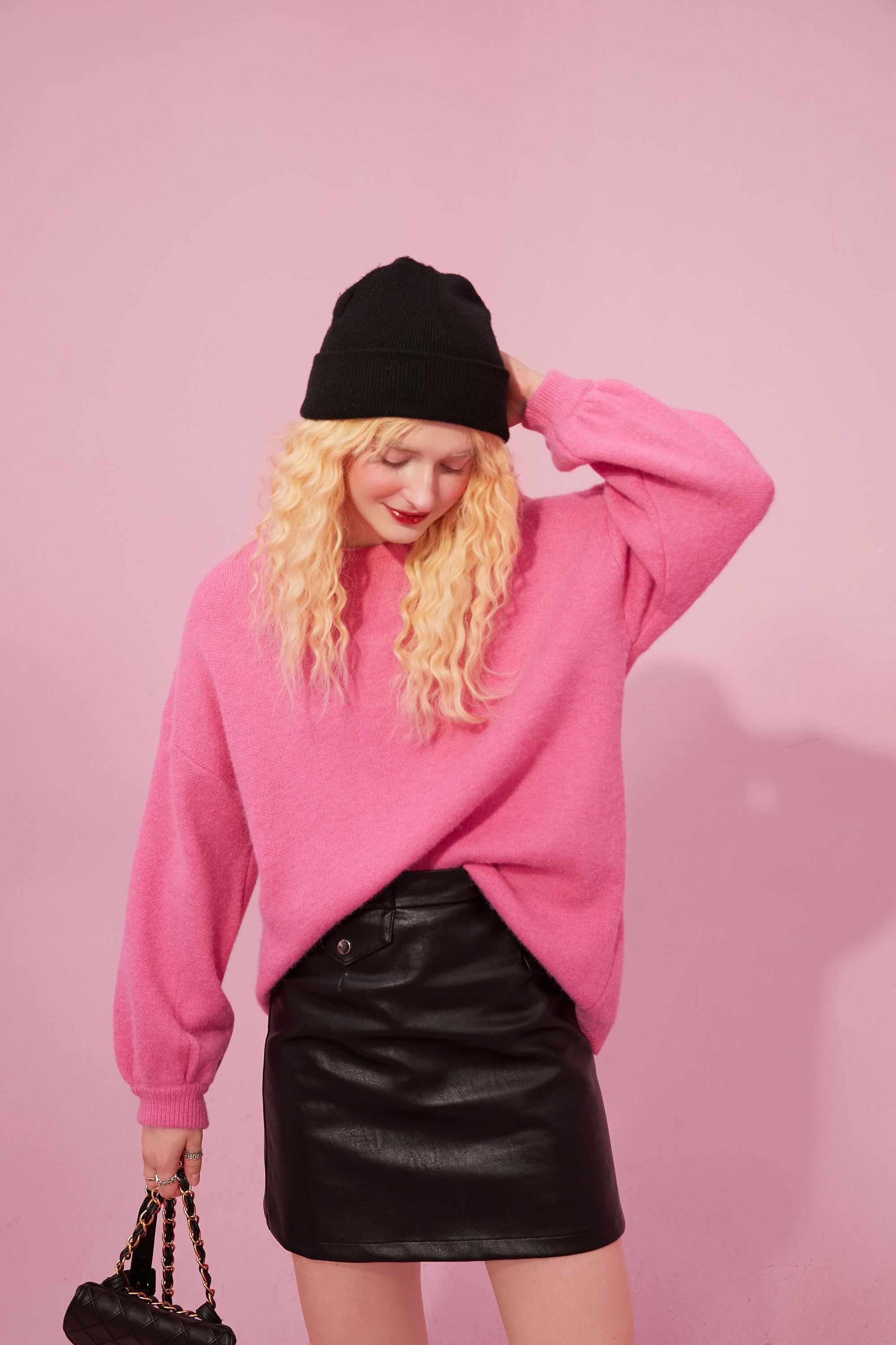 【お取り寄せ商品】セーター ニット ラウンドネック 丸首 パフスリーブ トップス 秋 冬 ゆったり ステッカー 原宿 カジュアル ストリート