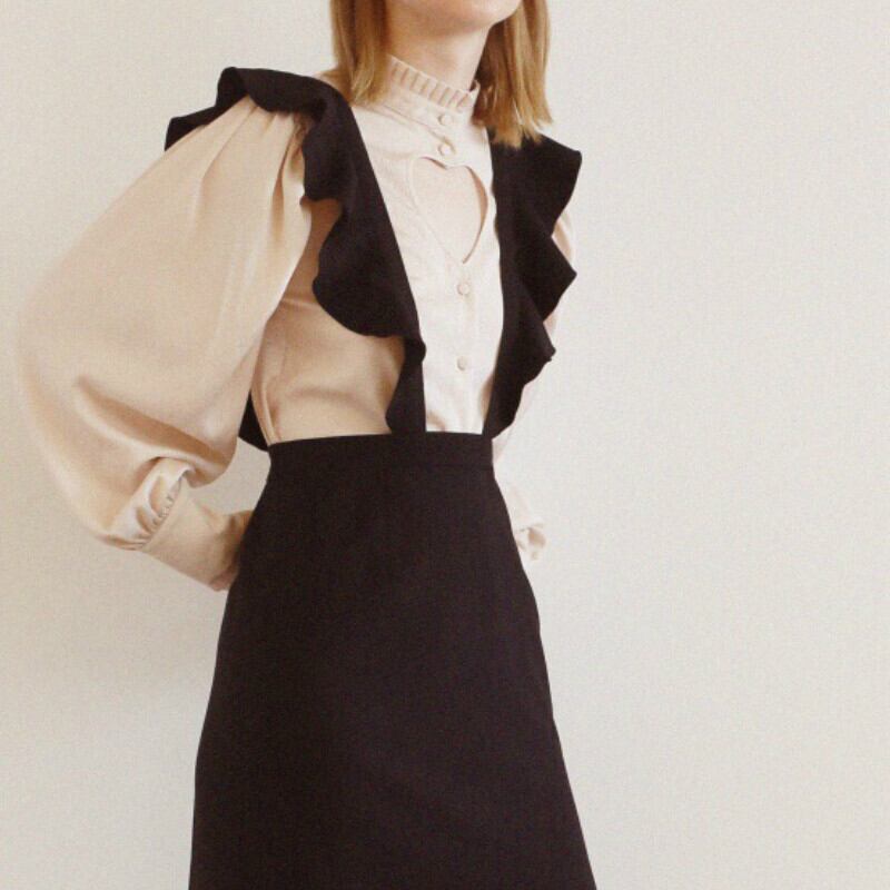【お取り寄せ商品】シャツ トップス 長袖 パフスリーブ スタンドネック レディース 原宿 ゆめかわいい ハート セクシー