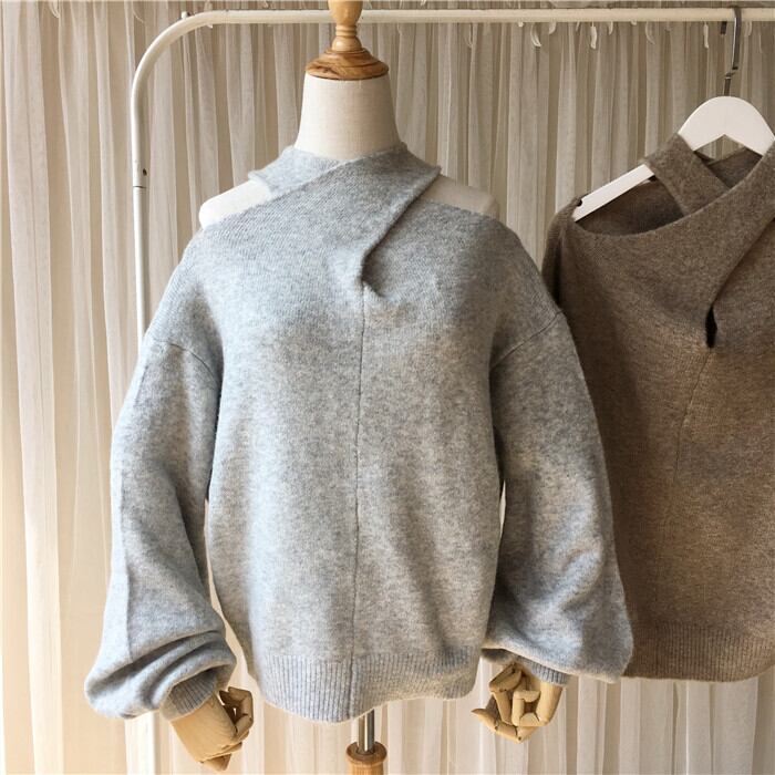 【お取り寄せ商品】トップス ニット セーター レディース 秋 冬 セクシー オフショルダー パフスリーブ 韓国 カジュアル 原宿