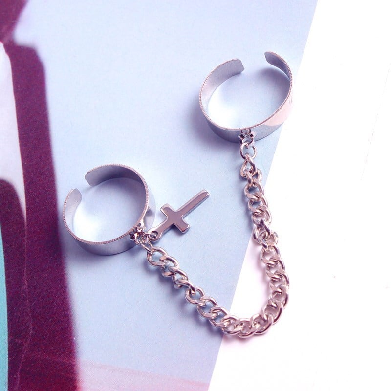 【お取り寄せ商品】指輪 リング アクセサリー 十字架 クロス チェーン サブカルチャー ロック 原宿