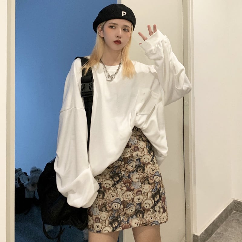 【お取り寄せ商品】ミニスカート タイトスカート レディース ボトムス 柄 くま テディーベア 原宿 サブカルチャー 古着風 レトロ