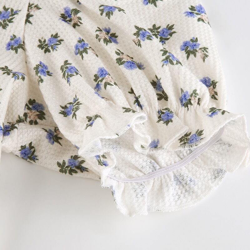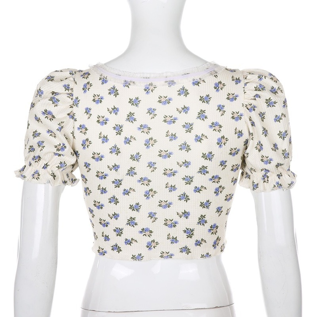 【お取り寄せ商品】トップス 半袖 ショート丈 へそ出し レトロ パフスリーブ 花柄 レトロ