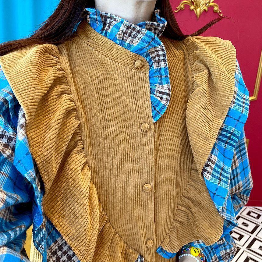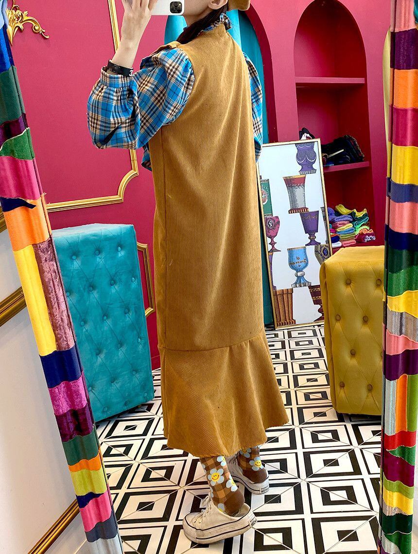 【お取り寄せ商品】ワンピース チェック レトロ フリル 長袖 アンティーク お洒落 原宿 古着風 フリル