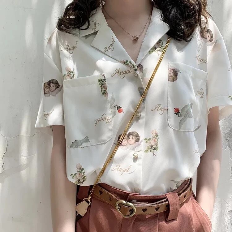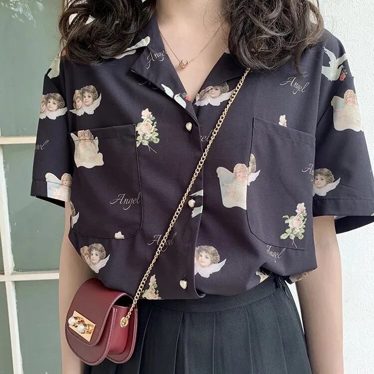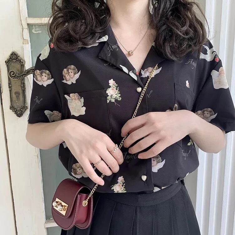 【お取り寄せ商品】トップス ブラウス シャツ レディース Vネック 半袖 天使 原宿 レトロ