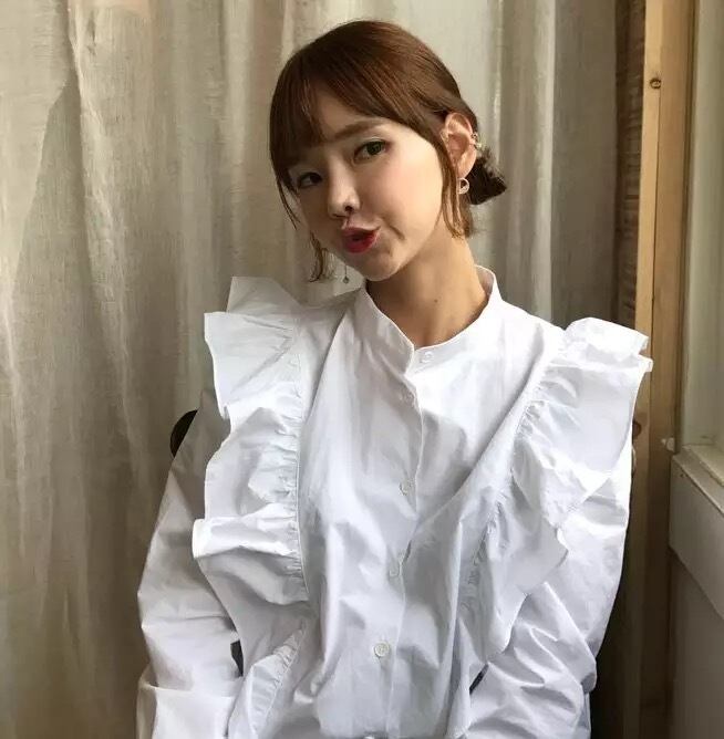 【お取り寄せ商品】トップス ブラウス シャツ フリル スタンドネック 原宿 韓国 お洒落 長袖