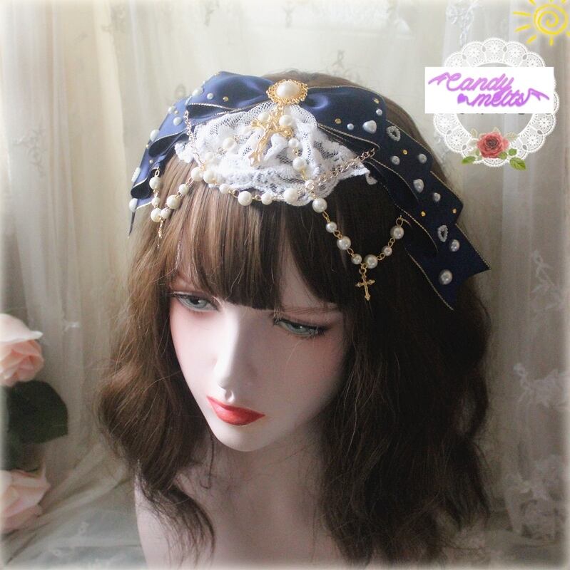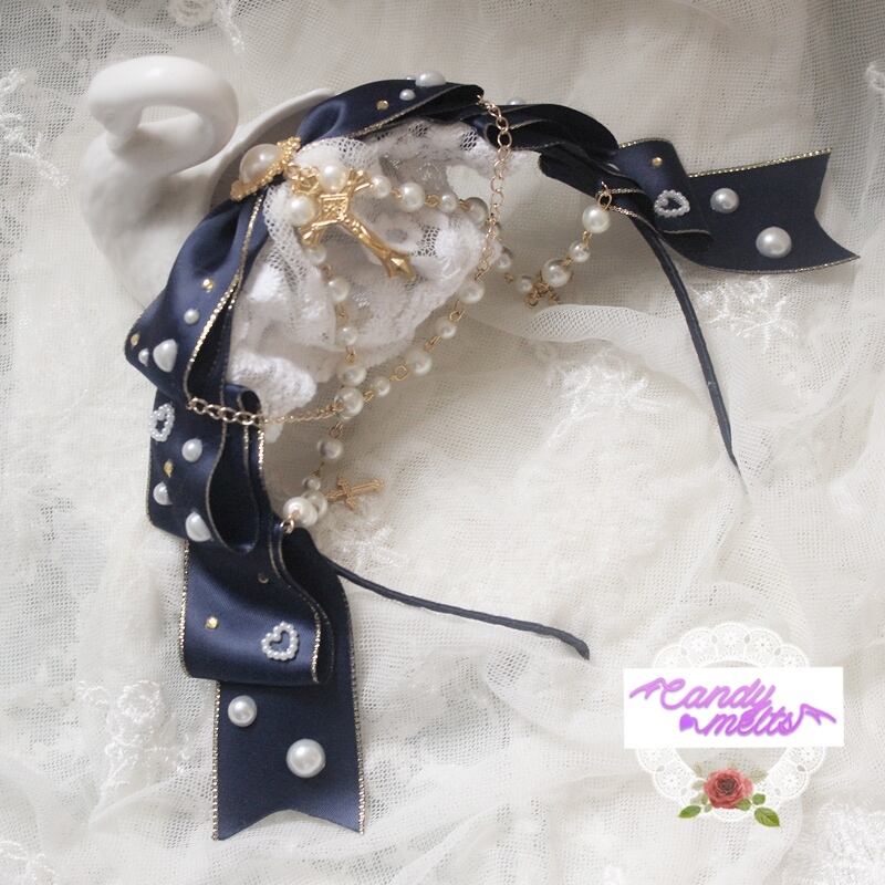 【お取り寄せ商品】カチューシャ ヘアアクセサリー ロリィタ ロリータ リボン パール 十字架 クロス レース