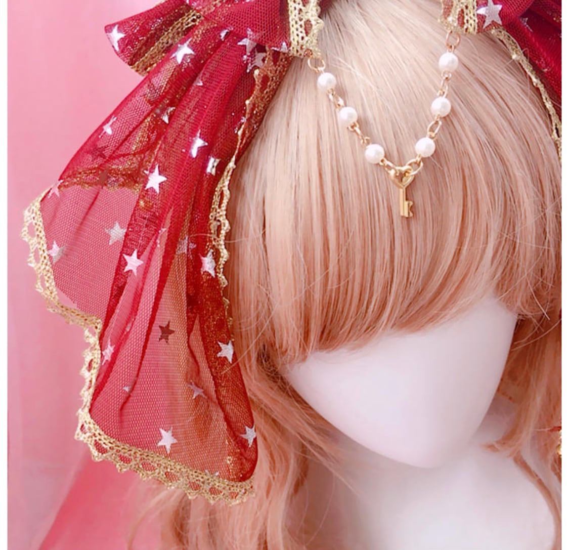 【お取り寄せ商品】カチューシャ リボン レース 星 パール チェーン ゴールド ロリィタ ロリータ