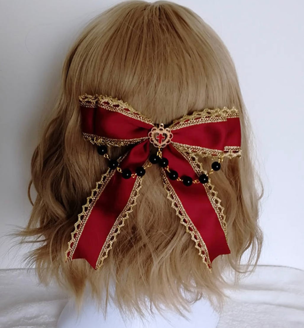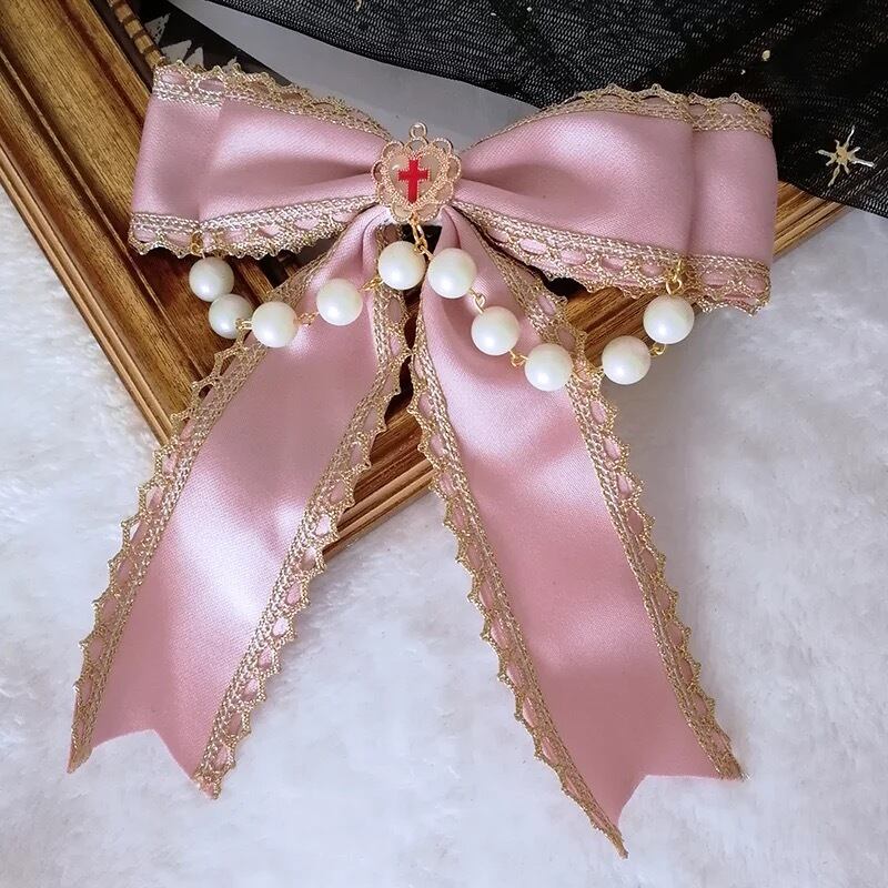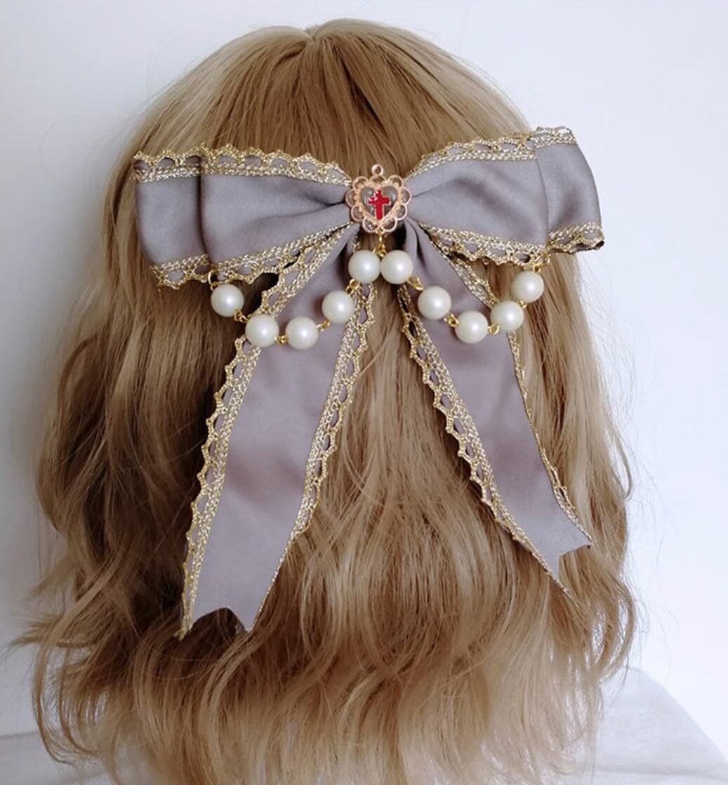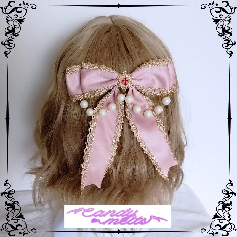 【お取り寄せ商品】ヘアクリップ ヘアアクセサリー リボン ロリィタ ゴスロリ ゴシック パール ハート レース クロス 十字架 ゆめかわいい 原宿