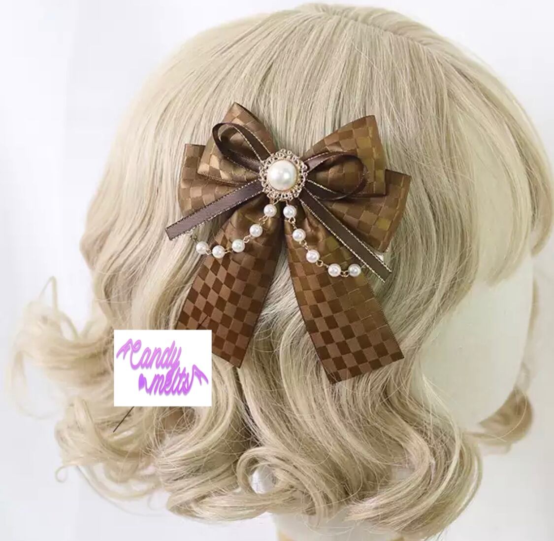 【お取り寄せ商品】ヘアアクセサリー ヘアクリップ リボン パール ロリィタ ゆめかわいい 原宿 ゴスロリ