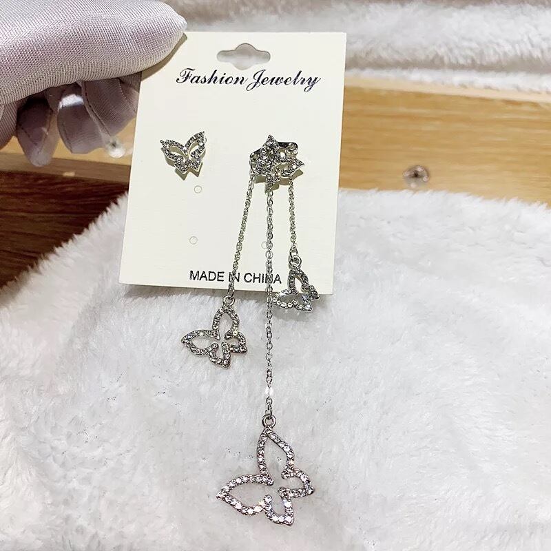 【お取り寄せ商品】ピアス アクセサリー レディース ゴールド シルバー キラキラ ビジュー チェーン 大人 お洒落 蝶