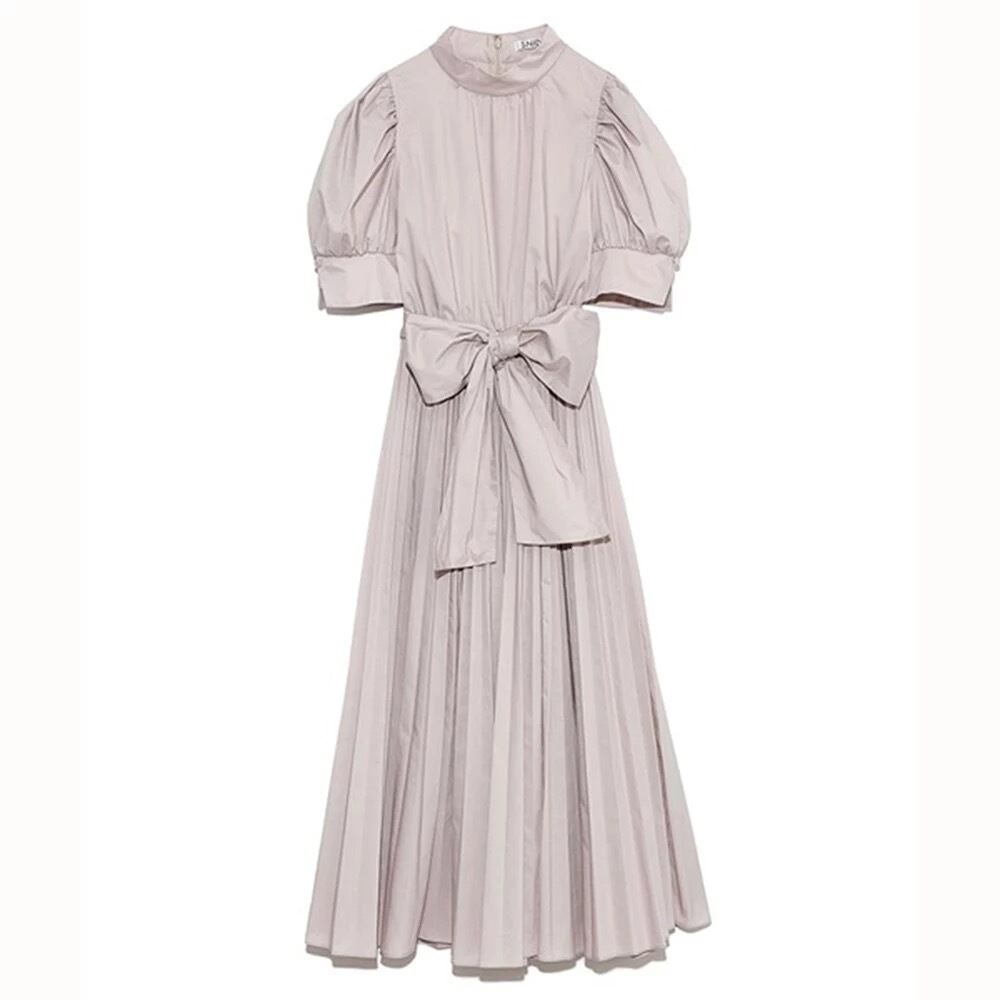 【お取り寄せ商品】ワンピース レディース 半袖 パフスリーブ リボン ロングワンピース お洒落 大人 可愛い