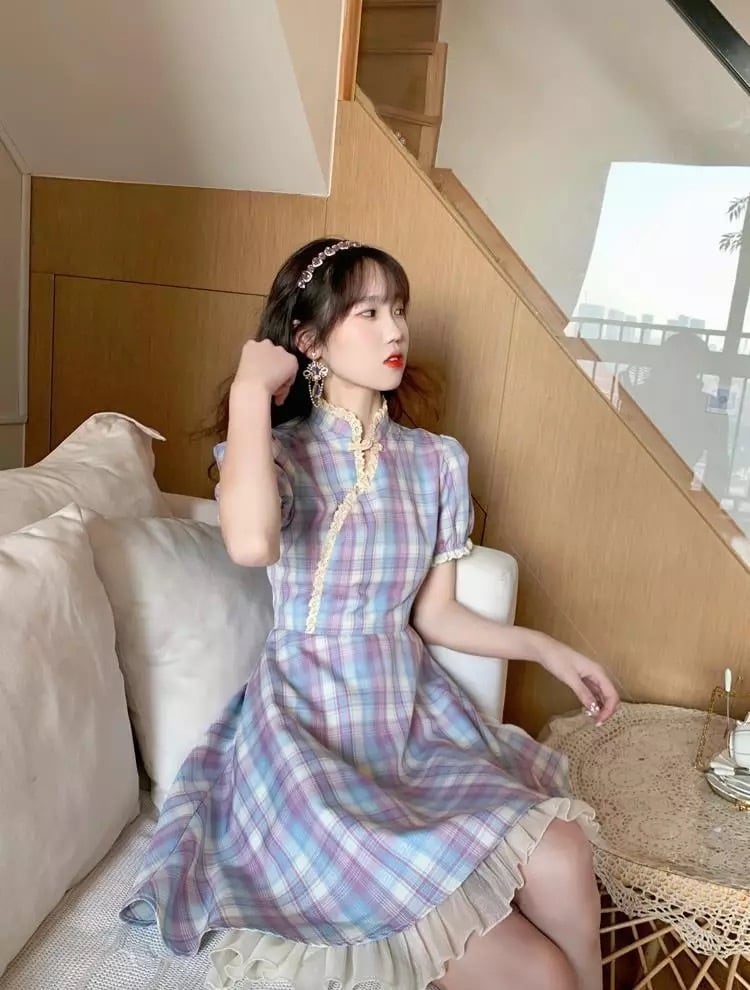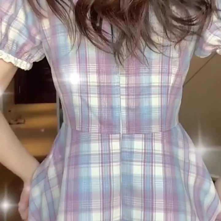 【お取り寄せ商品】ワンピース レディース 原宿 ゆめかわいい ロリィタ パフスリーブ チャイナ風 チェック フリル