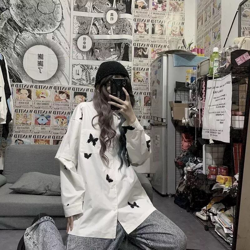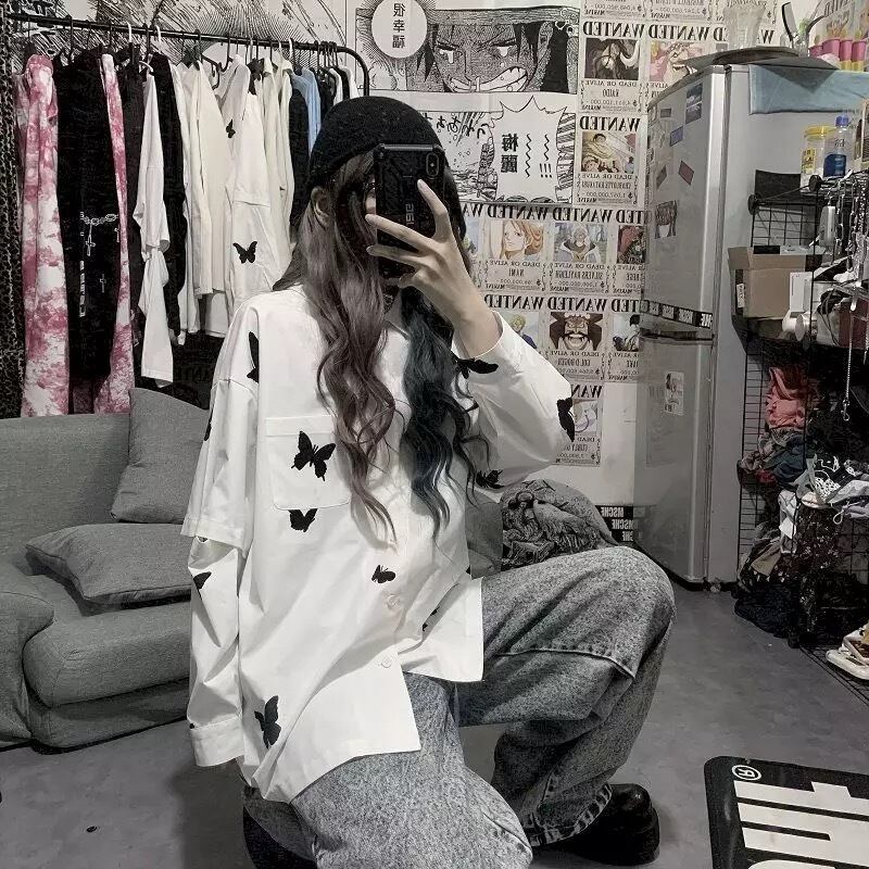 【お取り寄せ商品】トップス シャツ ブラウス レディース 半袖 長袖 2way 原宿 サブカルチャー モノトーン 蝶