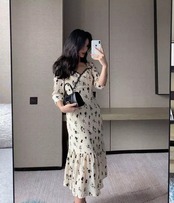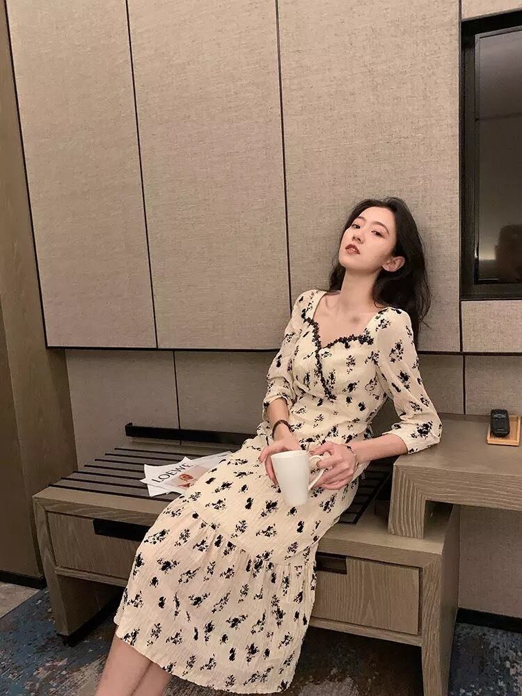 【お取り寄せ商品】ワンピース ドレス 大人 セクシー 七分袖 花柄 ロング ロングワンピース ヴィンテージ