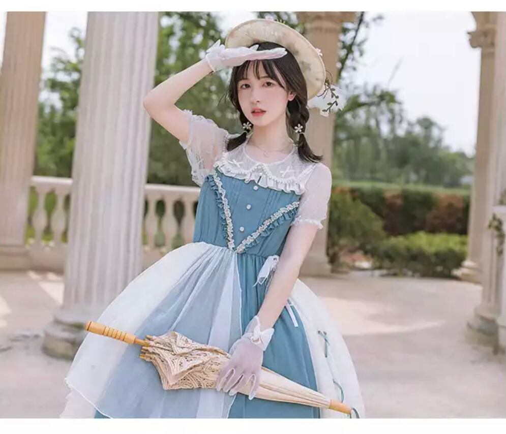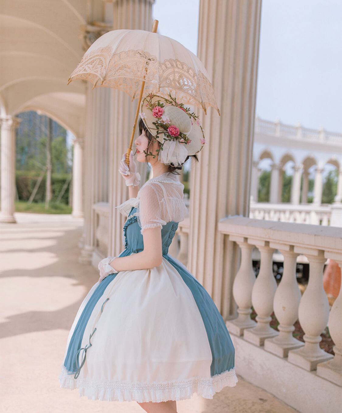【お取り寄せ商品】ジャンパースカート ワンピース ロリィタ ロリータ ゆめかわいい 原宿 シフォン ふんわり レース リボン