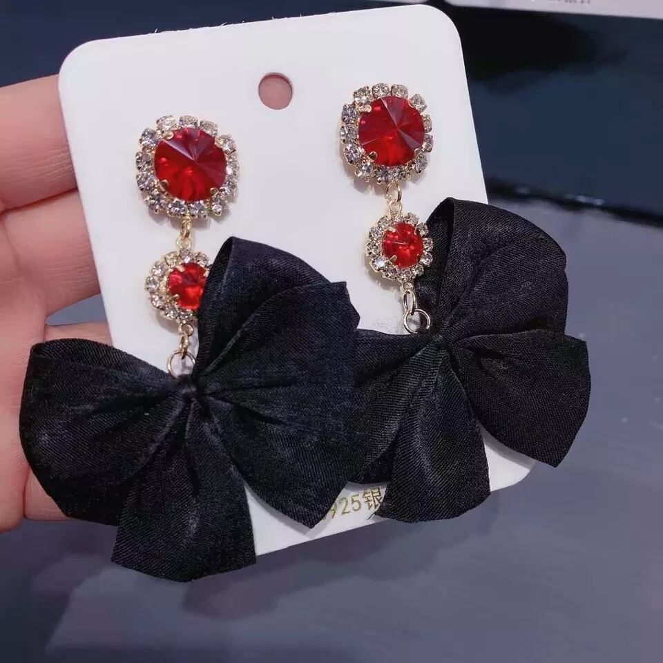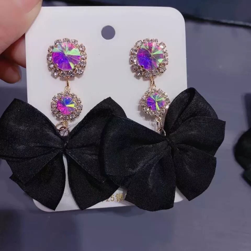 【お取り寄せ商品】ピアス アクセサリー レディース リボン 病み可愛い ダーク ゴシック ビジュー リボン ブラック