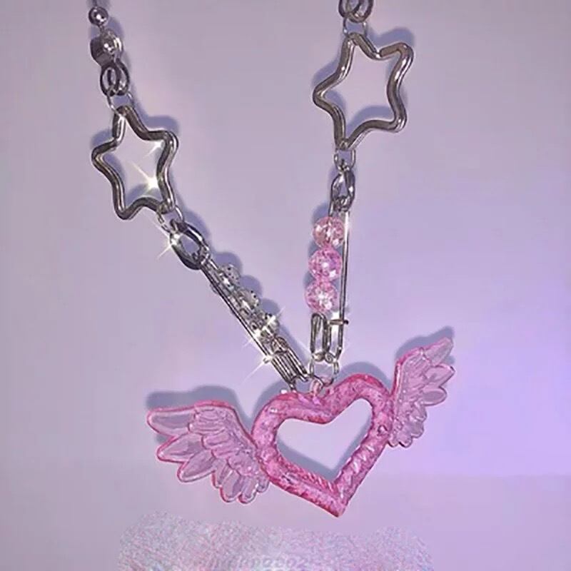 【お取り寄せ商品】ネックレス アクセサリー レディース 原宿 ゆめかわいい 病み可愛い サブカルチャー ハート テンション クリア シルバー