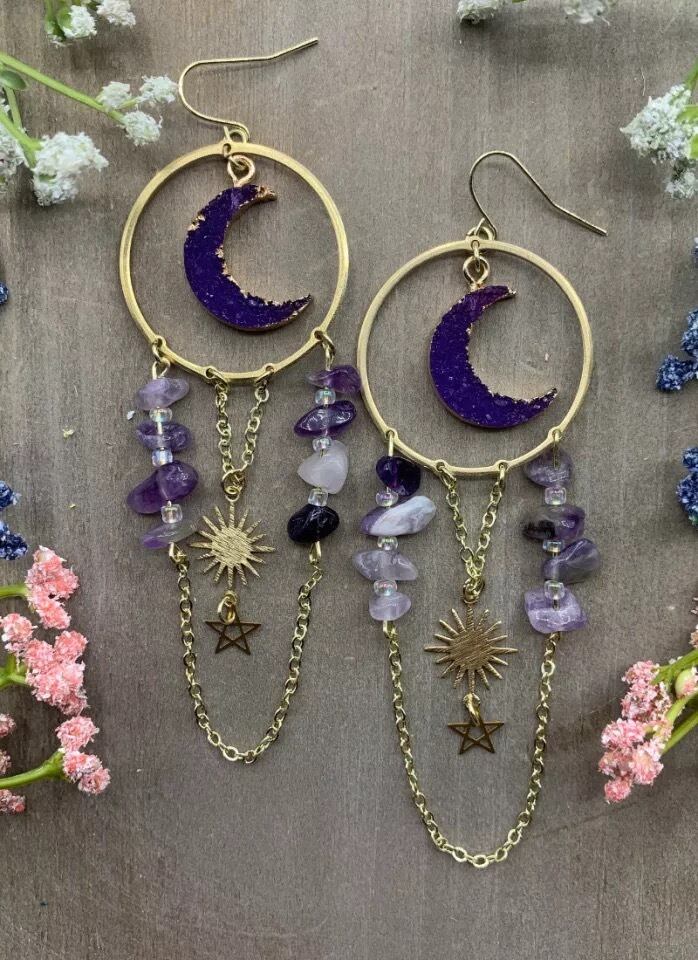 【お取り寄せ商品】ピアス アクセサリー レディース 原宿 サブカルチャー 月 天然石 ダーク