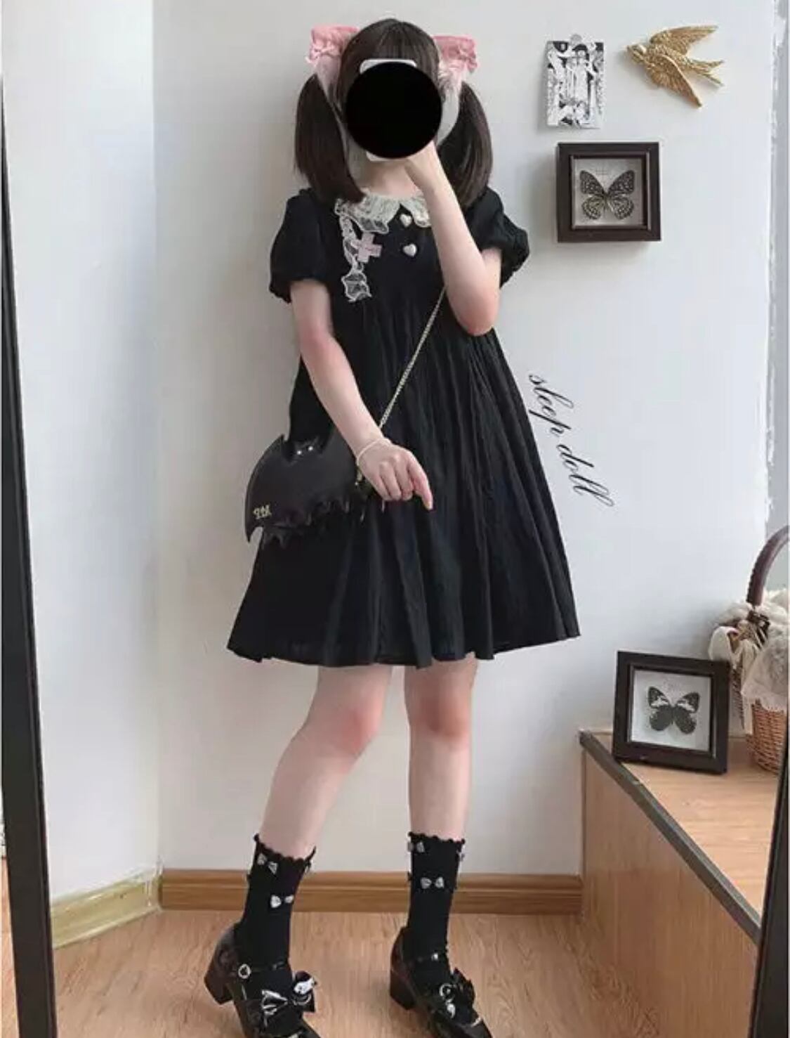 【お取り寄せ商品】ワンピース A Lライン パフスリーブ ロリィタ ゴシック 病み可愛い 原宿 フリル ダーク