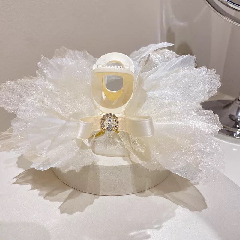 【お取り寄せ商品】ヘアアクセサリー ヘアクリップ ヘアバンス リボン チュール キラキラ ビジュー お洒落 大人 可愛い