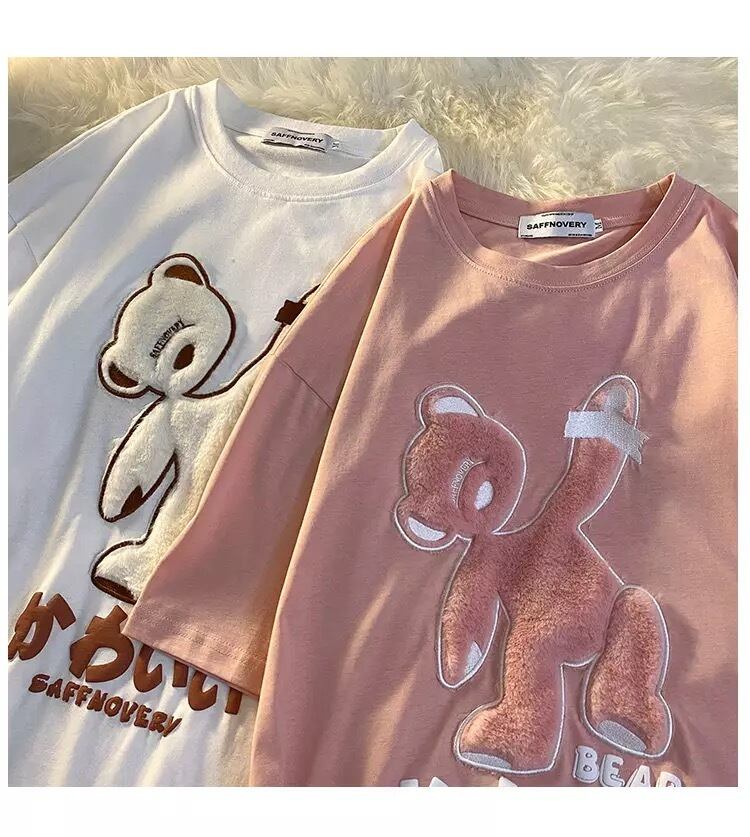 【お取り寄せ商品】Tシャツ 半袖 トップス レディース パステル ゆめかわいい 病み可愛い 原宿 テディーベア もこもこ 可愛い