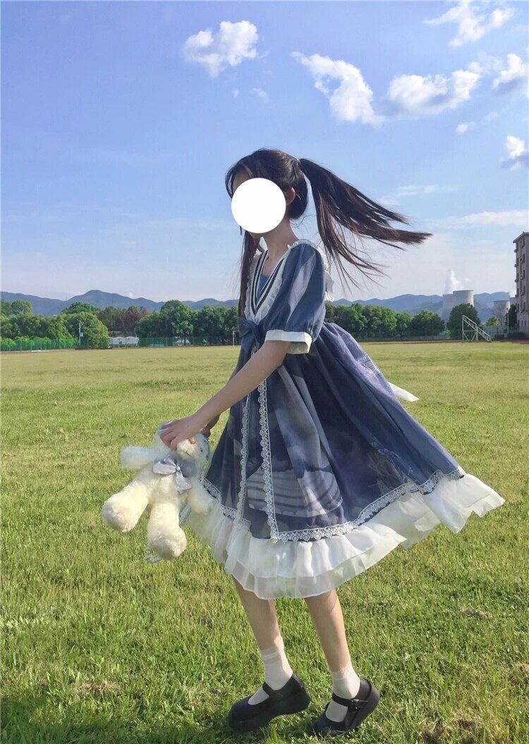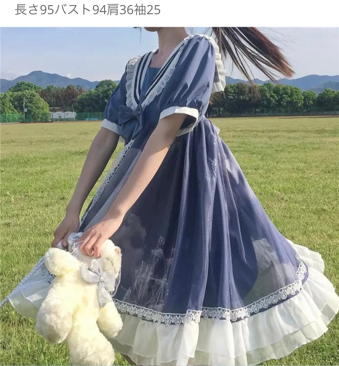 【お取り寄せ商品】ワンピース 半袖 ロリィタ パフスリーブ フリル シフォン セーラー リボン ロリィタ ゆめかわいい 病み可愛い 原宿
